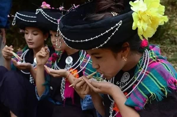 阿昌族以大米為主食,尤其喜歡食用大米制成的“米線”。他們喜歡吃腌臘肉、干牛肉以及腌菜、腌竹筍等酸性食品,還喜歡喝自釀的米酒和白酒。白酒用糯米飯加甜酒曲發(fā)酵制成,味道香甜可口、生津解渴、回味無窮。除此之外,阿昌族還有嚼煙的習(xí)慣。