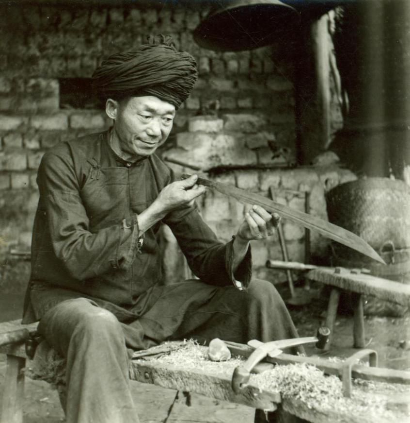 打制鐵器中極負盛名的就是號稱“煉極精純,柔可繞指,剁鐵如泥”的阿昌刀(戶撒刀)。阿昌刀,因主要生產(chǎn)于云南省德宏州傣族景頗族自治州隴川縣戶撒阿昌族鄉(xiāng)而又名“戶撒刀”,與新疆維吾爾族的英吉沙刀、甘肅省保安族的保安刀,并稱我國三大民族刀具。2006年,阿昌刀鍛制技藝經(jīng)國務(wù)院批準(zhǔn)列入第一批國家級非物質(zhì)文化遺產(chǎn)名錄。
