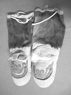游獵時期鄂倫春人的服飾基本都是用獸皮制作的。用獸皮縫制衣服,首先要熟化獸皮,先把皮子曬干,將煮熟的狍...