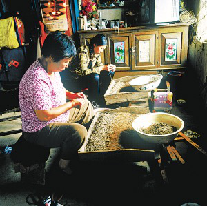 街津口村的赫哲族人在準備捕魚的網(wǎng)