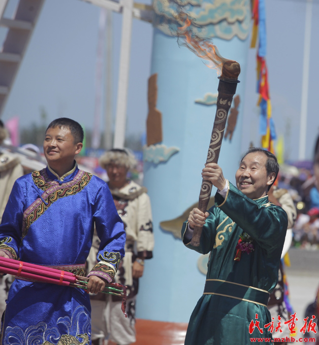 赫哲族“烏日貢”節(jié)在黑龍江同江市舉行。國(guó)家民委專職委員葛忠興(赫哲族)點(diǎn)燃象征火炬的圣香,開啟了今年的節(jié)日活動(dòng)