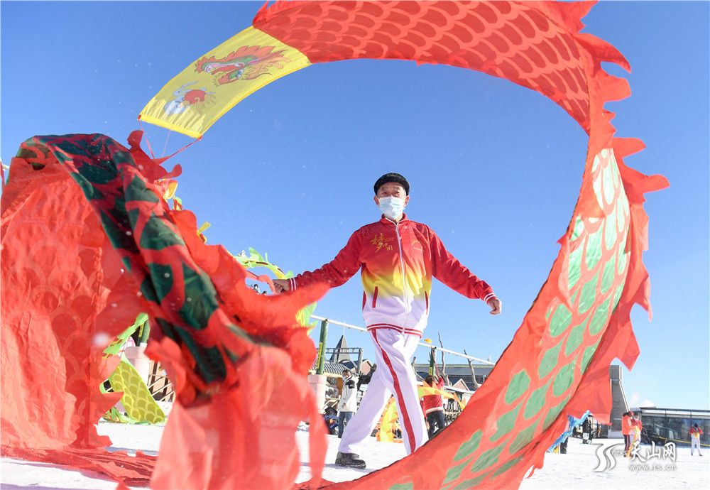 12月3日,烏魯木齊市民在絲綢之路冰雪風情節(jié)上舞龍。