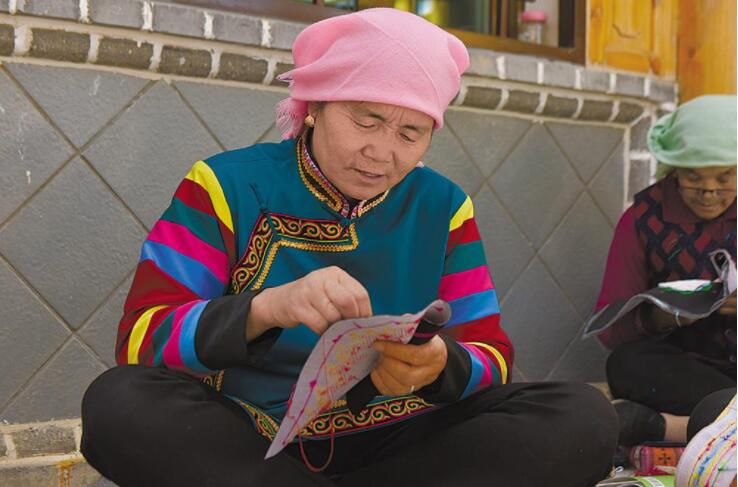 盤繡園里,阿姑們正在繡新一批的訂單。