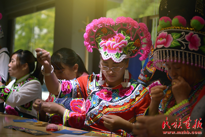 不忘初心,方能遠行。在上下求索創(chuàng)意民族服飾的同時,盧潔瑩不忘致力于彝族傳統(tǒng)文化的發(fā)揚與傳播。2016年起,索玉文化美學創(chuàng)意有限公司與楚雄市婦聯(lián)、彝繡協(xié)會共同主辦的,旨在幫助楚雄山區(qū)彝族婦女用傳統(tǒng)手工技藝精準扶貧的培訓項目“彝繡之夢”已開展了兩年?!皠?chuàng)業(yè)不易,要致富也要帶動各族同胞一起致富?!北R潔瑩說,“我們的培訓班每年都開辦,就是要幫助繡女們走出大山,走進大眾的視角,提供一個給她們展示與發(fā)掘精美彝繡技藝的平臺?!?/p>
