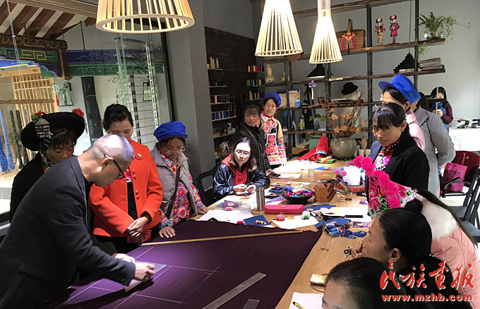 索玉文化美學創(chuàng)意有限公司組織創(chuàng)辦“彝繡之夢”培訓班,來自山區(qū)的彝族繡女們在服裝裁剪課上認真聽講(索玉文化美學創(chuàng)意有限公司 供圖)