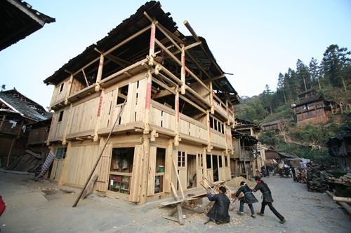 侗族木構建筑包括鼓樓、花橋、寨門、民居、戲樓等建筑,其中鼓樓、花橋最具代表性。鼓樓、花橋作為侗族歷史文化的物質載體,具有十分悠久的歷史,是侗族人民在長期的社會管理實踐和建筑實踐中運用智慧創(chuàng)造出來的具有獨特風格的民族建筑。其結構獨特,榫孔層疊交錯,不用一釘一鉚,且銜合無隙,具有重大的歷史、藝術和科學價值。據(jù)統(tǒng)計,黔東南州南部侗族地區(qū)有鼓樓近500余座、風雨橋300余座,上百年的木構建筑在南部侗族地區(qū)比比皆是。該項目2008年列入第二批國家級非物質文化遺產代表作名錄。