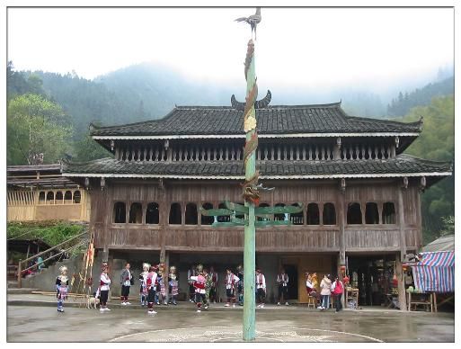 吊腳樓是苗族傳統(tǒng)建筑,是中國南方民族特有的古老建筑形式,樓上住人,樓下架空,被現(xiàn)代建筑學(xué)家認(rèn)為是最佳的生態(tài)建筑形式。吊腳樓是苗鄉(xiāng)的建筑一絕,它依山傍水,鱗次櫛比,層疊而上。是苗族最具特色的建筑。每棟木樓分上下兩層,按木樓的大小不同,下層從2-6排不等,因房子建在山坡上,地勢不同。里層一排為短柱,外面一排為長柱,柱子的上截柱頭都鑿有“十”字眼,用粗方條連成整體,為了支撐木樓的重量,下層屋多選用粗大的老杉木作柱子。最為奇特的是上下兩層柱子在結(jié)構(gòu)上是截然分開的,各自成體系。建房的時候先建底層,再建上層。上層屋柱的柱腳全“坐”在下層柱頭向外伸出的橫梁尾端上,垂下來約有一尺來長的柱腳就叫做“吊腳”。苗胞久住在高山,一年多數(shù)時間霧鎖云繞,但木樓較干燥,一般不容易患風(fēng)濕,但木樓較易燃燒,近年來,較富的苗胞也興建磚混房,但模式仍有所雷同。木樓中廳,干凈整潔,寬敞明亮,它不僅是苗族吃飯、休息、祭祀的場所,也是苗族人民講故事、唱苗歌、吹苗笛、拉果哈和男女談情說愛的地方。它成了苗族獨特的文化事象――火塘文化。