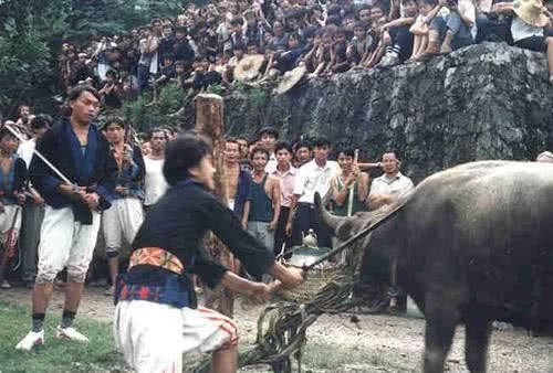 砍牛、打銅鼓是白褲瑤為死者舉行葬禮的儀式,整個(gè)葬禮悲壯、肅穆,祭祀場面氣氛凝重莊嚴(yán),這種傳統(tǒng)送喪習(xí)俗,既是表達(dá)遺屬對死者的悼念,也是一項(xiàng)眾人共同的祭祖活動,銅鼓、皮鼓,是葬禮活動的主要打擊樂器。