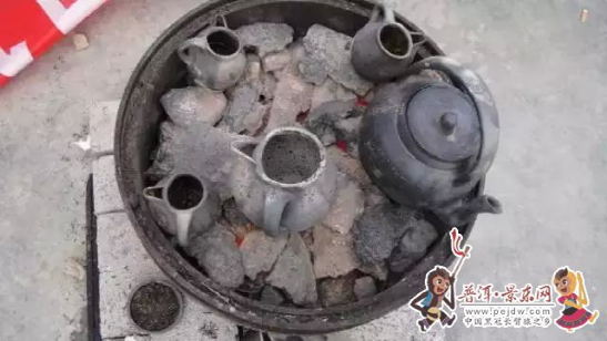 在景東的彝山,到處傳頌著百靈從無(wú)量山百丈高崖銜來(lái)茶種為人們治百病的故事,為紀(jì)念這只靈鳥(niǎo),飲茶時(shí)就有少男少女翩翩起舞,模仿靈鳥(niǎo)銜茶的美麗。久而久之,這些舞蹈就演變成了今天糊米罐罐香茶藝中不可缺少的禮儀。