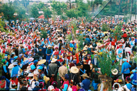 “繞三靈”活動(dòng)的特點(diǎn),除了向本主神靈祈求風(fēng)調(diào)雨順的內(nèi)容之外,主要在于其歌舞活動(dòng)所表現(xiàn)的男女情愛(ài)無(wú)所顧忌,放達(dá)不拘。每個(gè)歌舞隊(duì)列領(lǐng)頭者均為男女巫二人,他們以一手共執(zhí)一株齊人高的樹枝,另一手分別揮舞牦牛尾和花手巾,邊舞邊唱,引領(lǐng)著隊(duì)伍緩緩前行。樹枝上掛著紅綢系著的葫蘆,據(jù)說(shuō)葫蘆象征母腹,紅綢象征陰血。他們口唱的調(diào)子稱“活恩枯”直譯為“花柳曲”,一唱一和,幽默風(fēng)趣。其后的歌舞隊(duì)列,唱的也都是充滿艷情的調(diào)子,跳的是霸王鞭和八角鼓舞,舞姿多有男女背靠背、心合心、腳勾腳等形式,無(wú)拘無(wú)束地表達(dá)著熾熱的情感。