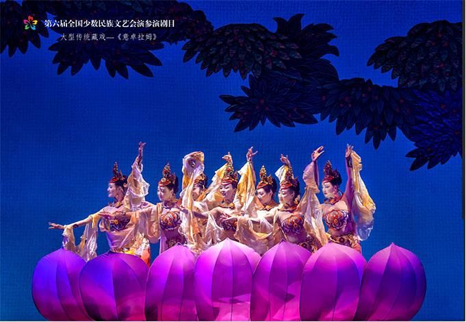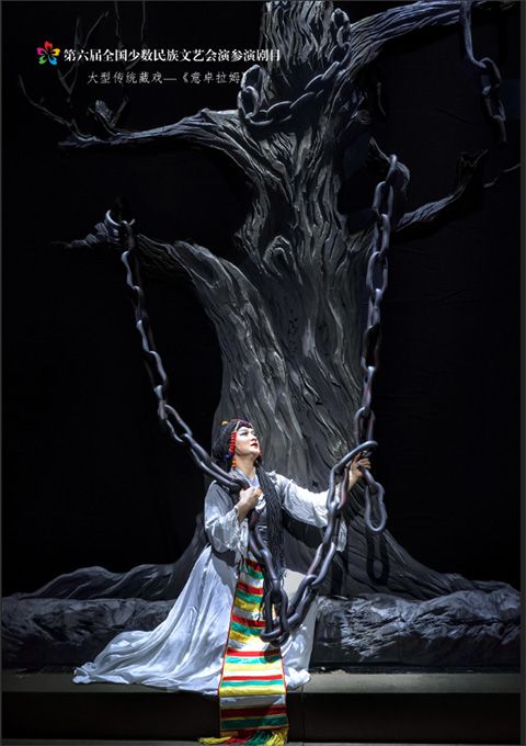 9月14日,作為第六屆全國少數(shù)民族文藝會演參演劇目,由青海省選送、青海省藏劇團(黃南藏族自治州民族歌舞劇團)創(chuàng)作演出的藏戲《意卓拉姆》在央視網(wǎng)和國家民委門戶網(wǎng)站進行演播。該劇講述了傳說中的仙女意卓拉姆與人間的諾桑王子相愛,歷經(jīng)挫折與磨難后終成眷屬的愛情故事,表現(xiàn)出意卓拉姆對愛情的忠貞不渝和諾桑王子堅韌不拔的意志。