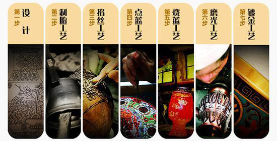 一件景泰藍(lán)成品需要?dú)v經(jīng)設(shè)計(jì)、制胎、掐絲、點(diǎn)藍(lán)、燒藍(lán)、磨光、鍍金七大步驟,近百道工序,十幾個(gè)工匠三個(gè)月的時(shí)間純手工方能完成。景泰藍(lán)既運(yùn)用了青銅工藝,又吸收了瓷器工藝,同時(shí)大量引進(jìn)傳統(tǒng)繪畫(huà)和雕刻技藝,是集冶金、鑄造、繪畫(huà)、窯業(yè)、雕、鏨、錘等多種工藝為一體的復(fù)合性工藝過(guò)程,堪稱集中國(guó)傳統(tǒng)工藝之大成,因而自古便有“一件景泰藍(lán),十箱官窯器”之說(shuō)。