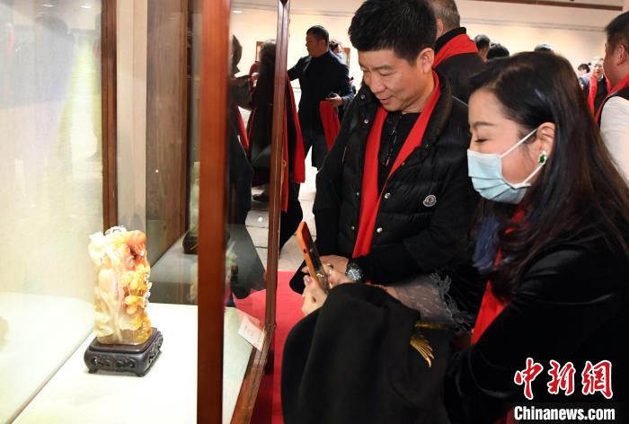 中國(guó)工藝美術(shù)大師葉子賢壽山石雕傳承展吸引觀(guān)眾觀(guān)看?!∮浾邉⒖筛?攝