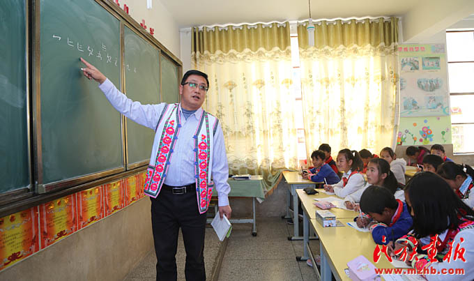 走進干凈整潔的教學(xué)樓,陣陣讀書聲漸漸清晰,原來是六年級的學(xué)生正在上彝語課??粗J真授課的彝族老師,校長杞萬開說:“建設(shè)德高業(yè)精的雙語教師團隊是我們做好雙語教育的根本保證,因此我們每年都選派優(yōu)秀教師參加云南省的雙語教師培訓(xùn),提升教師‘彝語為輔,漢語普通話為主’的雙語教育能力?!?/p>