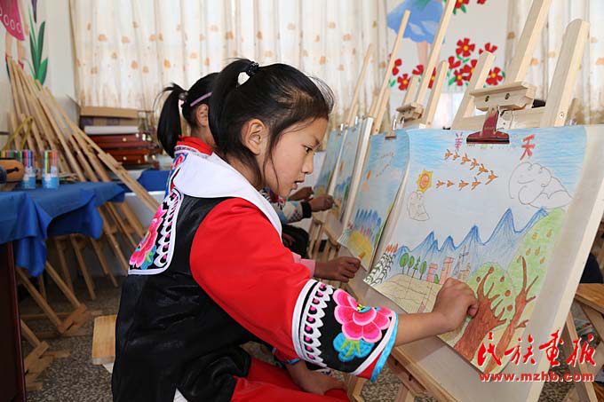 臘灣民族小學(xué)二年級的學(xué)生在上美術(shù)課