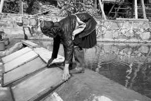 占里村共有182戶827人,這里的侗族古法造紙術(shù)源遠(yuǎn)流長(zhǎng),全村從事造紙業(yè)的就有170戶,占總戶數(shù)的93%。這里的造紙業(yè)依然保留著原始的家庭作坊和世代傳承的手工制作方式。這種古法造紙技藝以構(gòu)樹皮為原材料,添加獼猴桃藤、野棉花根,經(jīng)過(guò)水浸泡、石灰腌制、蒸煮、碓爛、攤曬、燒堿漂白、打漿、瀝水、抄紙、烤干等72道工序,最終制成白皮紙。