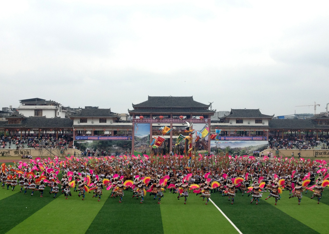“錦雞舞”也是在銅鼓和蘆聲伴奏下,由中年以上的苗族婦女在銅鼓坪上表演的傳統(tǒng)祭祀性舞蹈,這個舞蹈充分體現(xiàn)了苗族人民自古對飛鳥圖騰的崇拜和向往。她們頭戴銀飾,身穿黑色短上衣,腰間束若干條五彩鑲邊,末端墜掛銀牌和流蘇似錦雞華麗羽毛的彩條長裙,臀部被高高墊起效仿錦雞高翹的尾羽。她們圍圓圈起舞,舞蹈動作緩慢,在或向前或向后的舞步中,模仿錦雞頻頻“踱步”“旋轉(zhuǎn)”和“飛翔”,隨動作變化而使腰間彩帶起落飄散的舞姿,把人們的心又帶回到遠(yuǎn)古時代。象征鳳凰的“錦雞舞”,充分表現(xiàn)了苗族婦女為祈求民族富足和五彩人生虔誠而肅穆的場面。