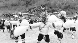 甘肅省隴南市文縣鐵樓藏族鄉(xiāng)村民們表演的國家級非遺項(xiàng)目池哥晝 孫文振攝
