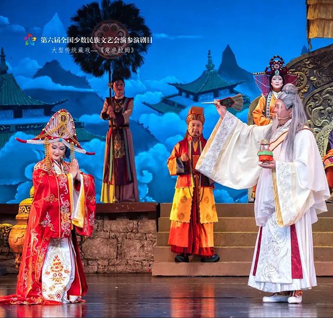 9月14日,作為第六屆全國(guó)少數(shù)民族文藝會(huì)演參演劇目,由青海省選送、青海省藏劇團(tuán)(黃南藏族自治州民族歌舞劇團(tuán))創(chuàng)作演出的藏戲《意卓拉姆》在央視網(wǎng)和國(guó)家民委門戶網(wǎng)站進(jìn)行演播。該劇講述了傳說中的仙女意卓拉姆與人間的諾桑王子相愛,歷經(jīng)挫折與磨難后終成眷屬的愛情故事,表現(xiàn)出意卓拉姆對(duì)愛情的忠貞不渝和諾桑王子堅(jiān)韌不拔的意志。