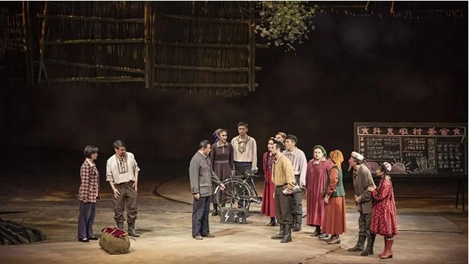 接著,主創(chuàng)人員選擇了最能代表劉國(guó)忠事跡的四個(gè)典型故事搭建起了這部人物傳記體話劇的主要架構(gòu):劉國(guó)忠說(shuō)服村民打破舊有觀念,為村里通上了電;多方爭(zhēng)取引水灌溉處于干旱絕收威脅的千畝玉米地;勸說(shuō)村民改種色素辣椒以改善經(jīng)濟(jì)達(dá)到脫貧增收的目的;張羅為村里孩子建立幼兒園,并讓在縣城任教的女兒回到村里來(lái)教學(xué)。這幾個(gè)事例不過(guò)是劉國(guó)忠為村民做的許許多多好事中的一小部分,看起來(lái)并沒(méi)有那么驚天動(dòng)地,然而這些都是做起來(lái)有著相當(dāng)大的難度、能造福一方的有力舉措。