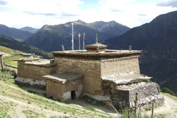 獨立式碉房無院落,多建在荒山隱蔽的山洼地段,平面隨地形而異,分散于山巒河谷之中。在居住集中的村落,這種獨立式碉房高低錯落、層疊而上,小徑石階通達各碉房之間。而院式碉房除了以碉房為主體之外,前面或三面砌筑院墻,形成封閉式院落,沿院墻布置牲畜圈、雜用房及傭人住房等。這種院式碉房多為貴族頭人所住。在形成村落的地方,有的碉房彼此相連,依山就勢,因地成形,突出塔式碉房或院式碉房,在自由多變中形成了一個地區(qū)的中心,聯(lián)系各處的小徑巷道,有寬有窄,曲曲折折,這是碉房群體布局的重要特點。