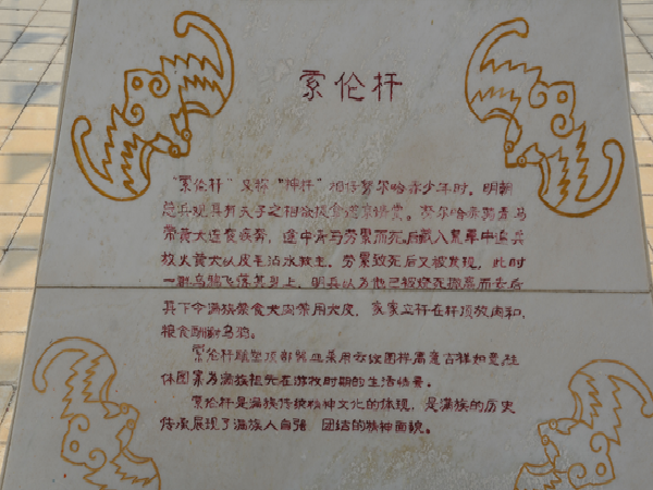 房子煙囪的設(shè)置在東、西山墻外,煙囪距房子0.6米左右,用青磚或土坯砌成,有圓形、方形兩種。院周圍用木柵欄,或用磚、土砌成圍墻。大門多設(shè)門樓或門房。院內(nèi)設(shè)有影壁墻。影壁墻后側(cè)立有“索倫桿”。院內(nèi)東西廂房南面修有牛棚、馬棚、車棚和儲(chǔ)存谷物糧倉(cāng)。滿族人講究衛(wèi)生,室內(nèi)外都收拾得干凈利落,物品放置井井有條,柴禾垛得立立整整。
