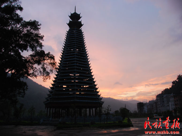 一首侗族詩(shī)歌《遠(yuǎn)去的鼓樓》這樣寫(xiě)道:“如今我面對(duì)一張泛黃的照片/風(fēng)雨之中似乎還聽(tīng)到了鏗鏘之聲/遠(yuǎn)古的鼓角征戰(zhàn)廝殺/如海市蜃樓般的幻影/在眼前縹緲而來(lái)又縹緲而去/鼓樓毀了又建建了又毀/一個(gè)歷盡滄桑的民族呵/木雕畫(huà)梁上的記錄/也是那樣千瘡百孔/正因有千瘡百孔作點(diǎn)綴/古老的民族古老的鼓樓/更加放射出不屈的光芒/更加盛開(kāi)出藝術(shù)的花朵。”