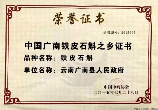 2015年7月28日,廣南鐵皮石斛被中國中藥協(xié)會授予“中國廣南鐵皮石斛之鄉(xiāng)”證書。(凌埡公司提供)
