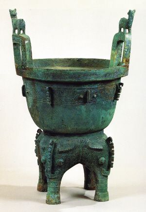 殷墟出土的可移動(dòng)文物包括大量青銅器、玉器、骨器、陶器、牙器、蚌器、竹木器、漆器、皮革制品、紡織品。青銅器中,司母戊方鼎、司母辛鼎、婦好三聯(lián)甗、鸮尊,以及雙馬驅(qū)動(dòng)的馬車配件尤其引人關(guān)注。玉器包括各種禮器、飾品、工具以及玩賞品,種類繁多,色澤豐富。陶器除普通粘土陶外,還出土白陶、硬陶及釉陶(原始瓷)。