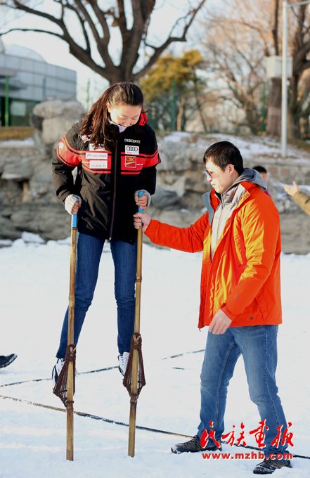 為了更好地將冰雪趣味健身賽事、冰雪健身體驗(yàn)活動(dòng)等送到全市各族群眾身邊,北京市民族傳統(tǒng)體育協(xié)會(huì)創(chuàng)造性地將綾球、高腳競(jìng)速及板鞋競(jìng)速等少數(shù)民族傳統(tǒng)體育項(xiàng)目與冬季冰雪相結(jié)合,整理、發(fā)展了雪地綾球、雪地高腳、雪地板鞋等項(xiàng)目,在現(xiàn)場(chǎng)進(jìn)行展示交流,吸引大批群眾熱情參與。