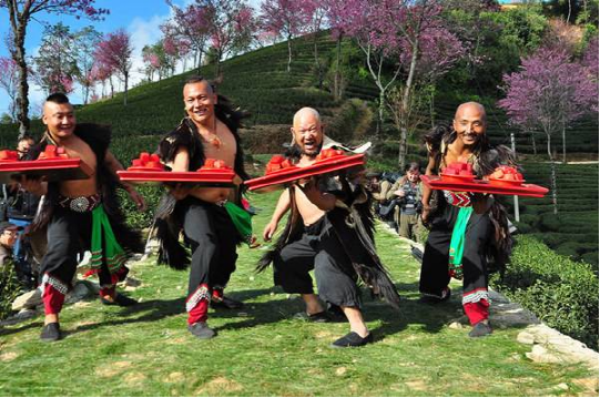 南澗“彝族跳菜”主要有“宴席跳菜”和“舞臺(tái)跳菜”兩大類。“宴席跳菜”也稱“席間跳菜”或“實(shí)地跳菜”,是當(dāng)?shù)匾妥迦罕娫诮Y(jié)婚慶典、新房落成、迎接貴賓、給老人祝壽等重大喜慶場(chǎng)合,宴請(qǐng)賓客,為增加喜慶氣氛而跳菜,講究“吃著并快樂著”。另一類是“舞臺(tái)跳菜”,根據(jù)表演地點(diǎn)或舞臺(tái)大小又分為“舞臺(tái)跳菜”和“廣場(chǎng)跳菜”?!拔枧_(tái)跳菜”即舞臺(tái)上表演的跳菜,演員通常在20人左右,舞蹈動(dòng)作粗獷豪放、剛健有力,聲音高亢明亮。而“廣場(chǎng)跳菜”演員少則幾十人,多則可達(dá)幾百人,氣勢(shì)恢宏、整齊和諧。