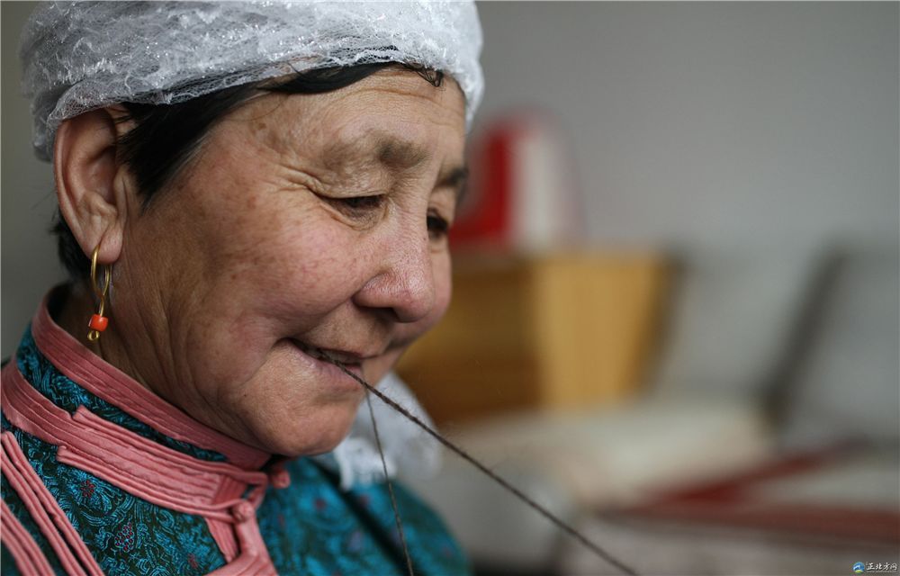 傳統(tǒng)氈繡不僅用于工藝品,大多用在生產(chǎn)生活中。蘇尼特氈繡技藝的繡制首先從制氈開(kāi)始,大都在夏末秋初進(jìn)行。材料多為駝絨線,而紡駝絨線則是用駱駝膝蓋絨毛以及駝鬣的細(xì)絨手搓而成。