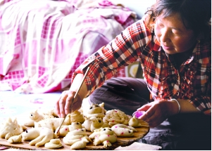 在和林格爾縣的廣大農(nóng)村地區(qū),有些年長的婦女幾乎都是技藝高超的面塑高手。就捏制風(fēng)格來說,和林地區(qū)面塑風(fēng)格古樸、粗獷、豪放、深厚,卻不乏細(xì)致、優(yōu)美、精巧。它主要以以面粉為主料,調(diào)入不同色彩的食用顏料,用手指和簡單工具剪刀、梳子、篦子、竹針等,塑造各種栩栩如生的形像。
