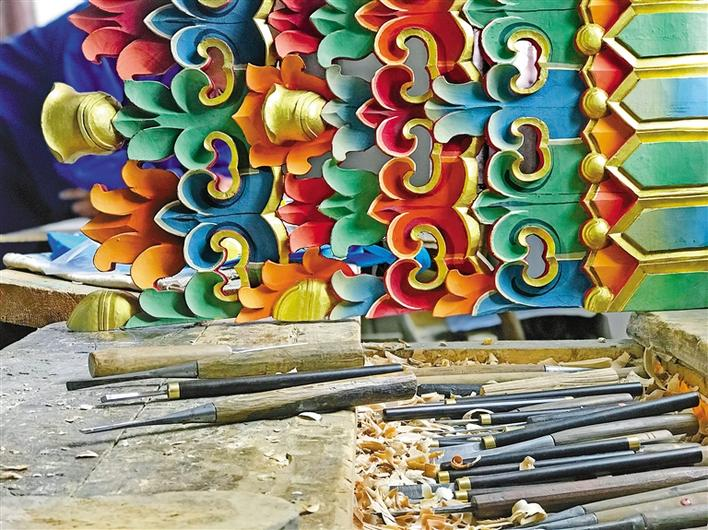 藏式木雕藝術(shù)有著深厚的文化背景和民族特征,是藏民族雕刻藝術(shù)領(lǐng)域里一朵怒放的藝術(shù)之花。它既有濃厚的裝飾趣味,又頗具觀賞價(jià)值和藝術(shù)魅力,是一門能讓木頭“復(fù)活”的技藝。