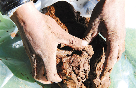 香泥放入牛角制作藏香。