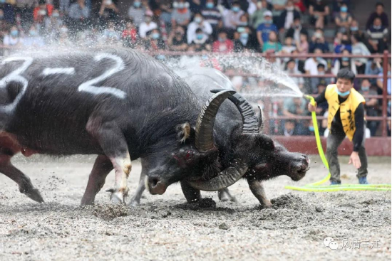 ·2020年5月1日,廣西三江侗族自治縣在縣城侗鄉(xiāng)鳥巢舉行中國侗族“月也”牛王節(jié)活動,以祈福游行、牛王爭霸賽等形式盡展侗鄉(xiāng)風(fēng)情,14頭牛王輪番登場激戰(zhàn),讓觀眾大呼過癮。今年五一,三江在精心豐富文化旅游業(yè)態(tài)的同時,全力加強客流管控,嚴防人員聚集,有序引導(dǎo)游客間隔入園、錯鋒旅游,力促疫情防控和文旅復(fù)蘇“兩不誤”,助力侗鄉(xiāng)文化旅游“回暖升溫”。