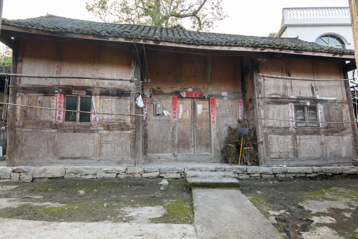 批林村傳統(tǒng)民居為全木結(jié)構(gòu)的吞口屋,常見為三間并列,上下兩層。第一層居中的房屋為堂屋,屋外壁內(nèi)縮一柱形成吞口。房屋底下還有一層壘砌平整的石基,用以將吞口屋與土層隔離,達(dá)到防潮防濕的目的。石基也隨著人們的踩踏,變得圓潤(rùn),與傳統(tǒng)建筑一起,成為了歷史的見證者之一。時(shí)間的沖滌,石基也開始泛起了亮黑色。