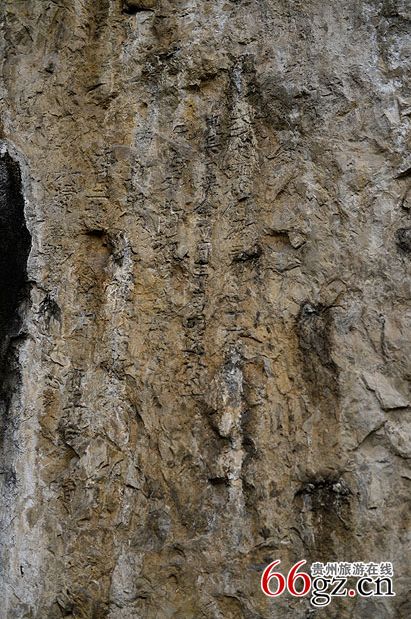 金山洞摩崖是貴陽(yáng)市花溪區(qū)最早的摩崖石刻,也是貴州最早的摩崖石刻之一。該摩崖石刻位于燕樓鄉(xiāng)東北三里的金山洞巖壁上。其山上豐下儉,古人利用自然山形,在可避風(fēng)雨的洞壁上摩巖、題刻賦詩(shī)作畫(huà)。整個(gè)摩崖面積通高140厘米,寬74厘米;自右至左豎行排列,共6行82字。據(jù)系楷書(shū)陰刻,書(shū)法古樸流暢,具有較高的歷史價(jià)值。