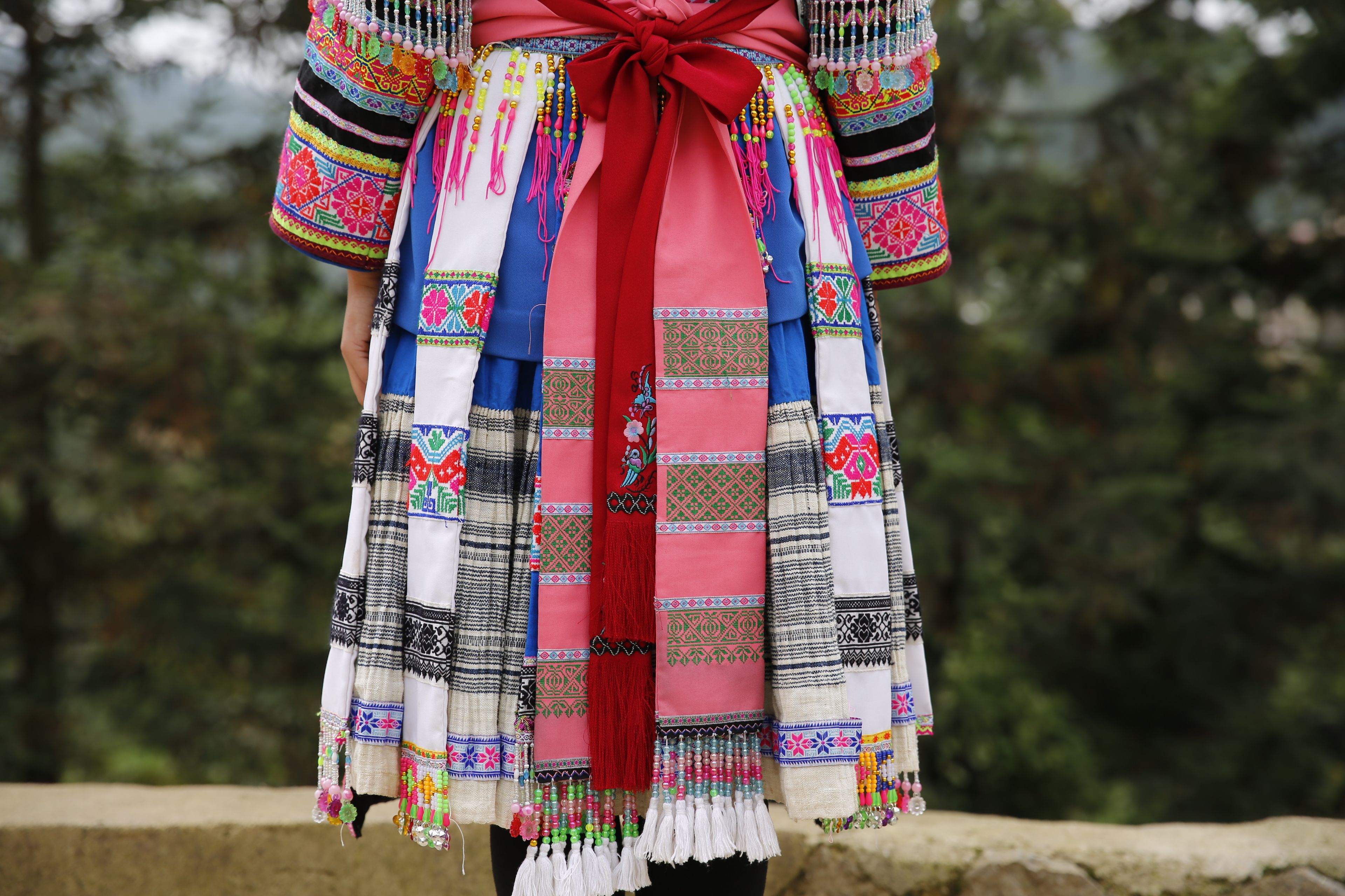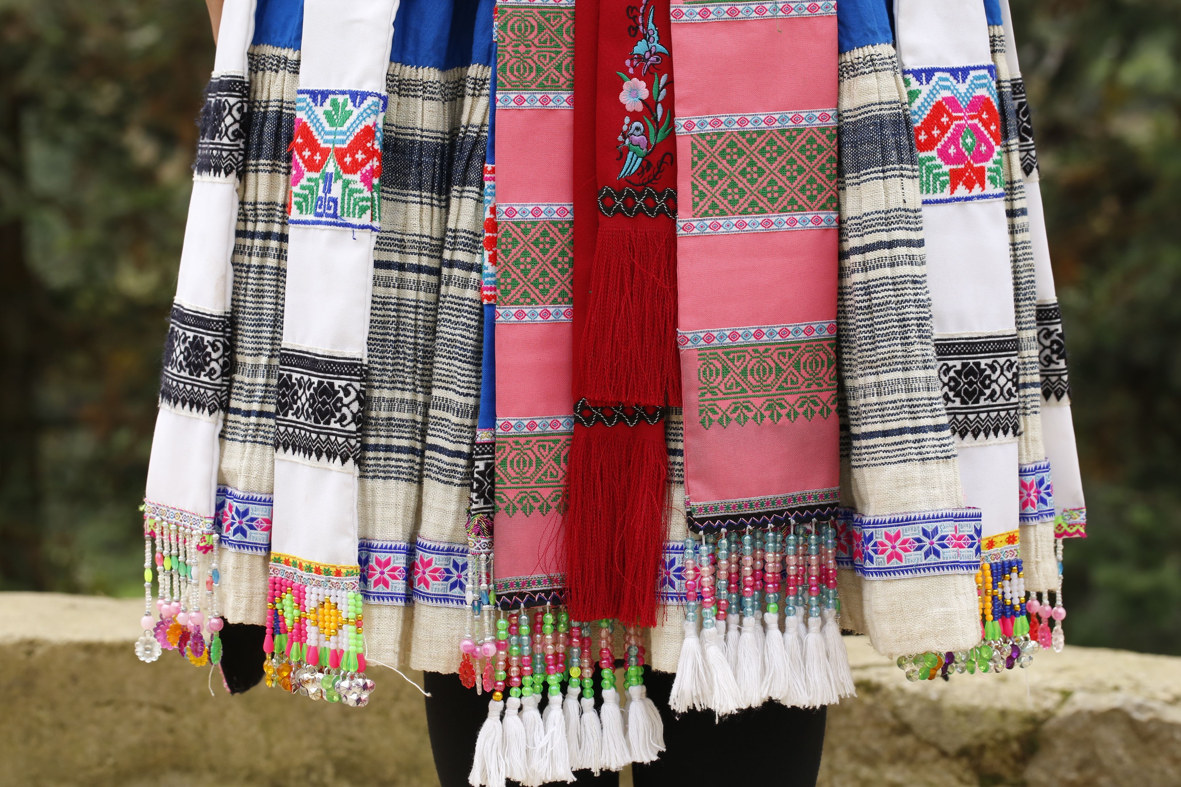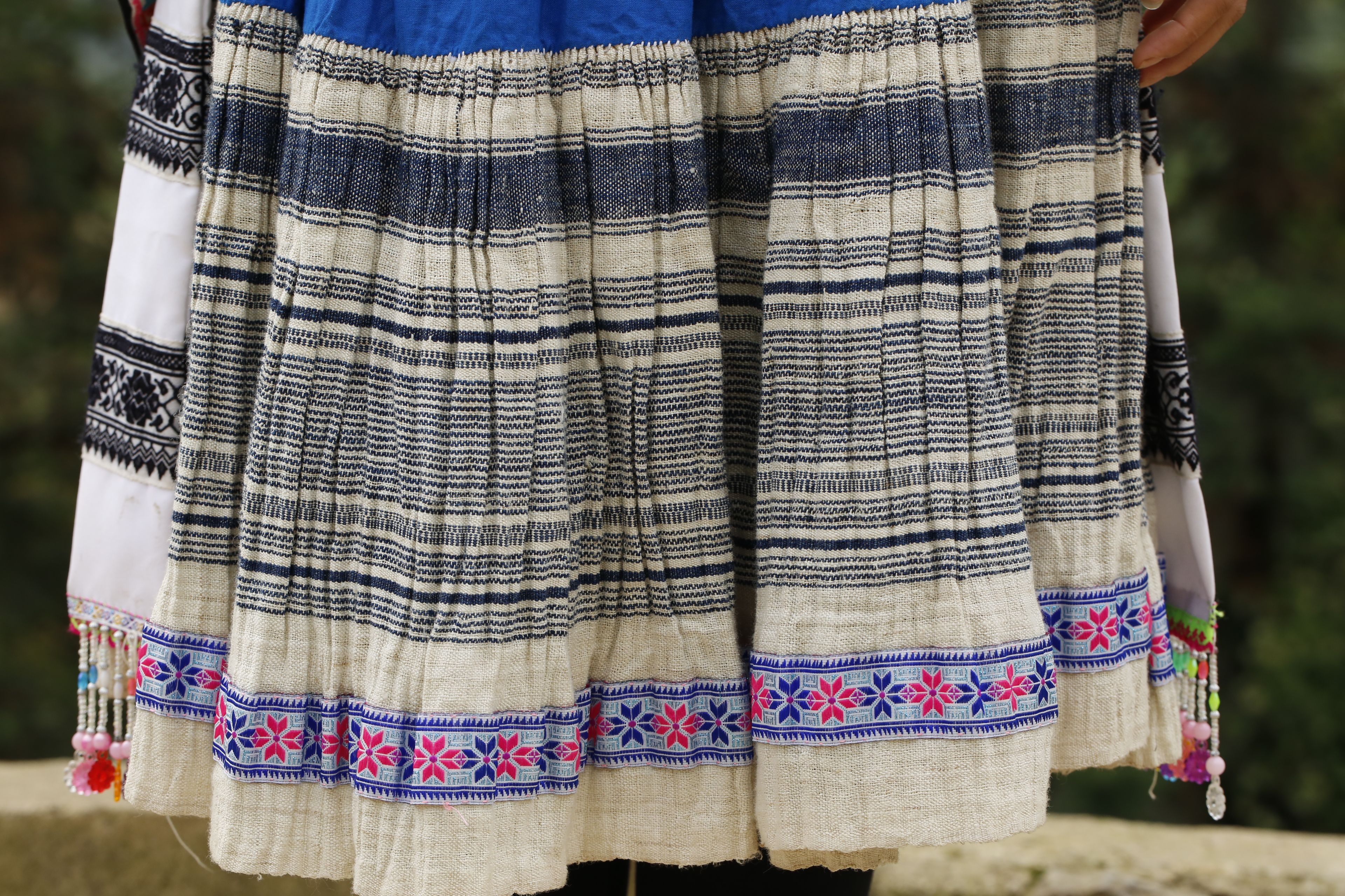 苗族女子服飾花帶百褶裙-裙擺背面