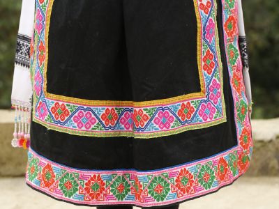 苗族女子服飾花帶百褶裙-裙擺側(cè)面繡花及印染