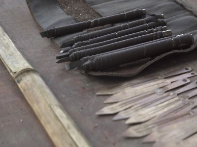 圖片說明:貴州貴陽清鎮(zhèn)市流長鄉(xiāng)腰巖村苗族制作口弦所需工具-鑿子
